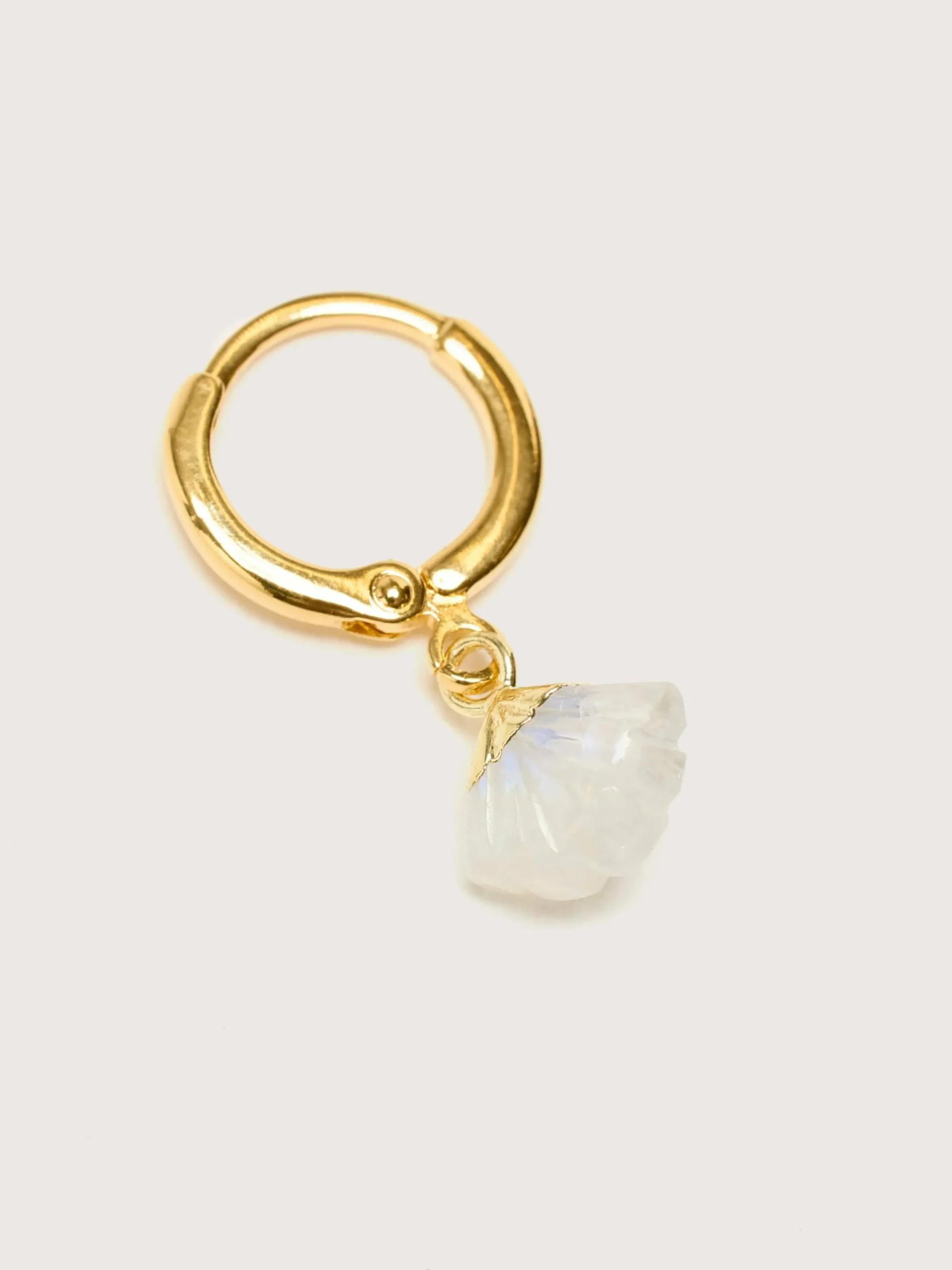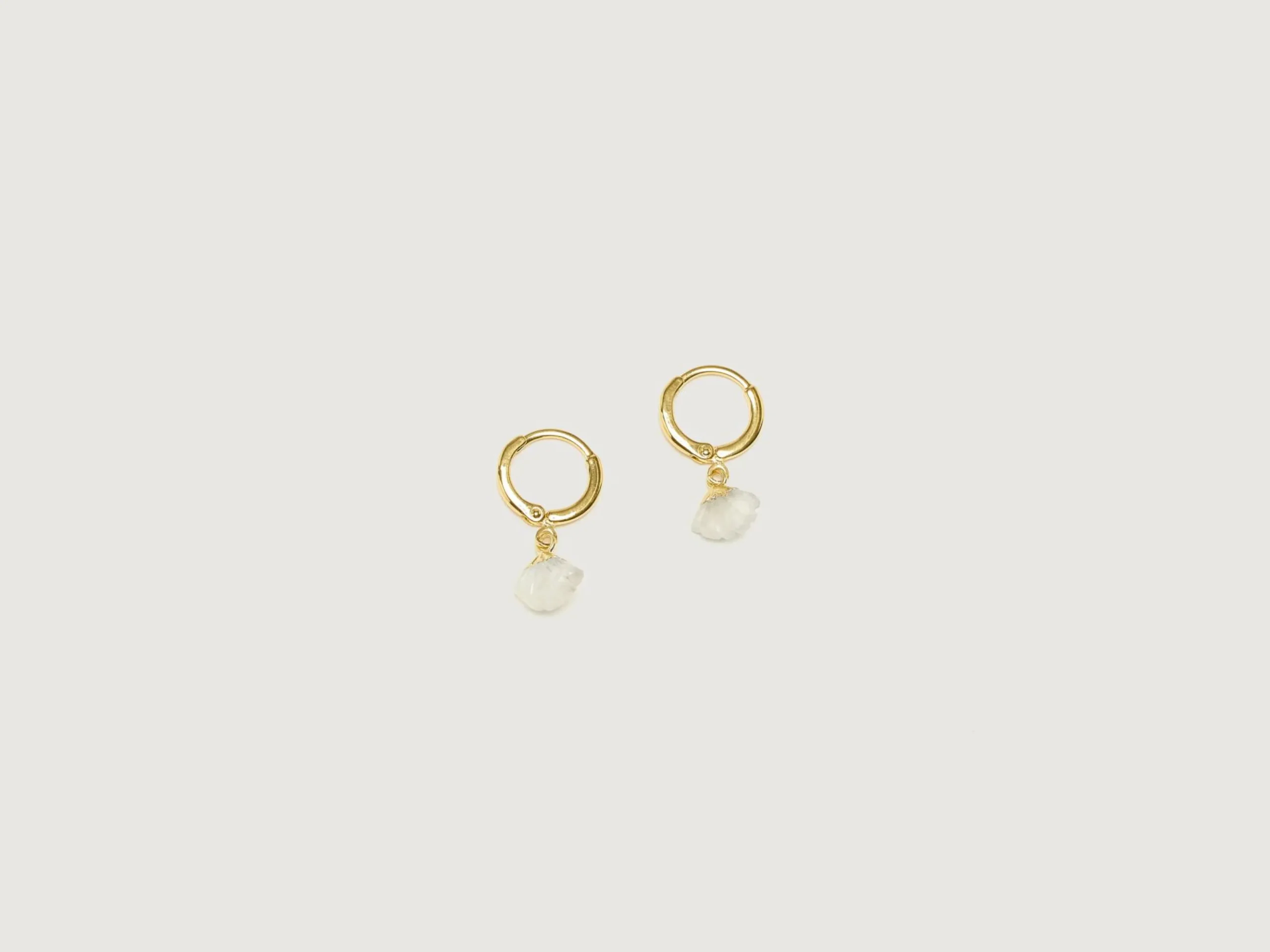 The Vadi Jewels Daya Hoop earrings are gold-plated small hoops with shell-shaped mother of pearl charms.