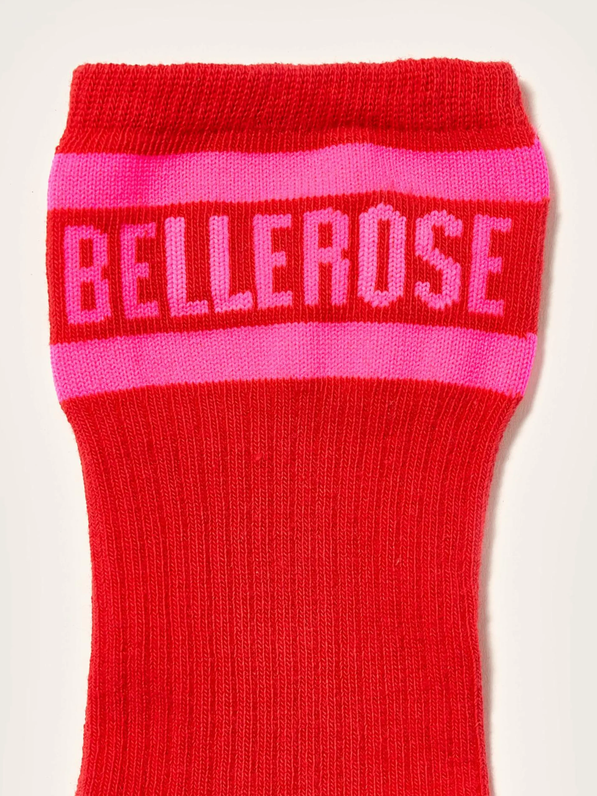 Klassieke rode Bellerose-sokken met roze logo.