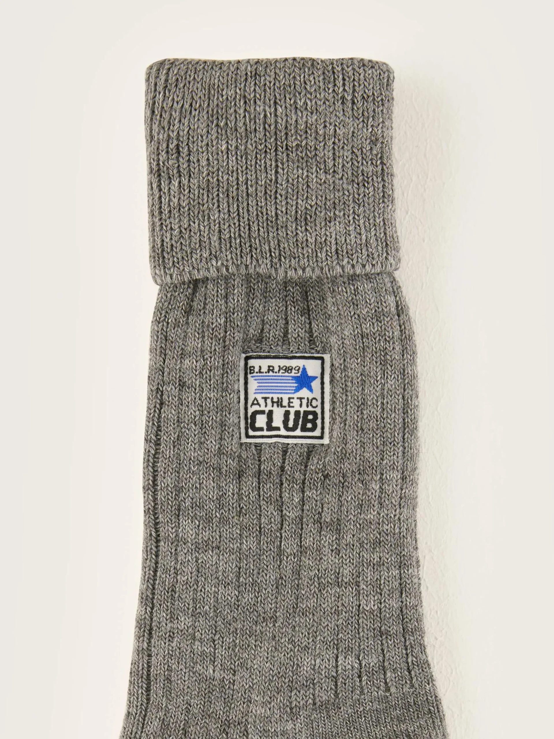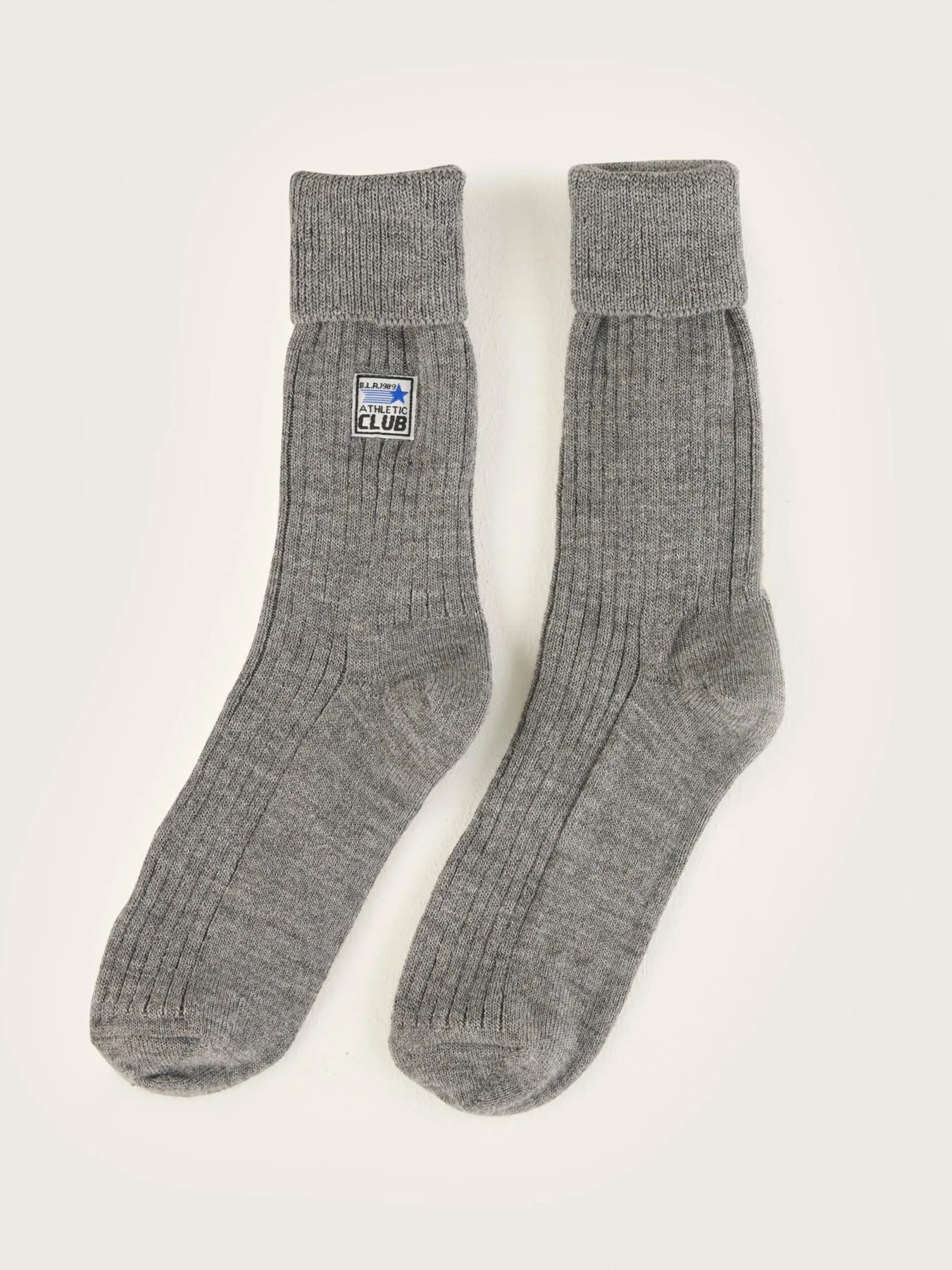 Geribde sokken met Bellerose Athletic Club-label, van grijze wolmix.