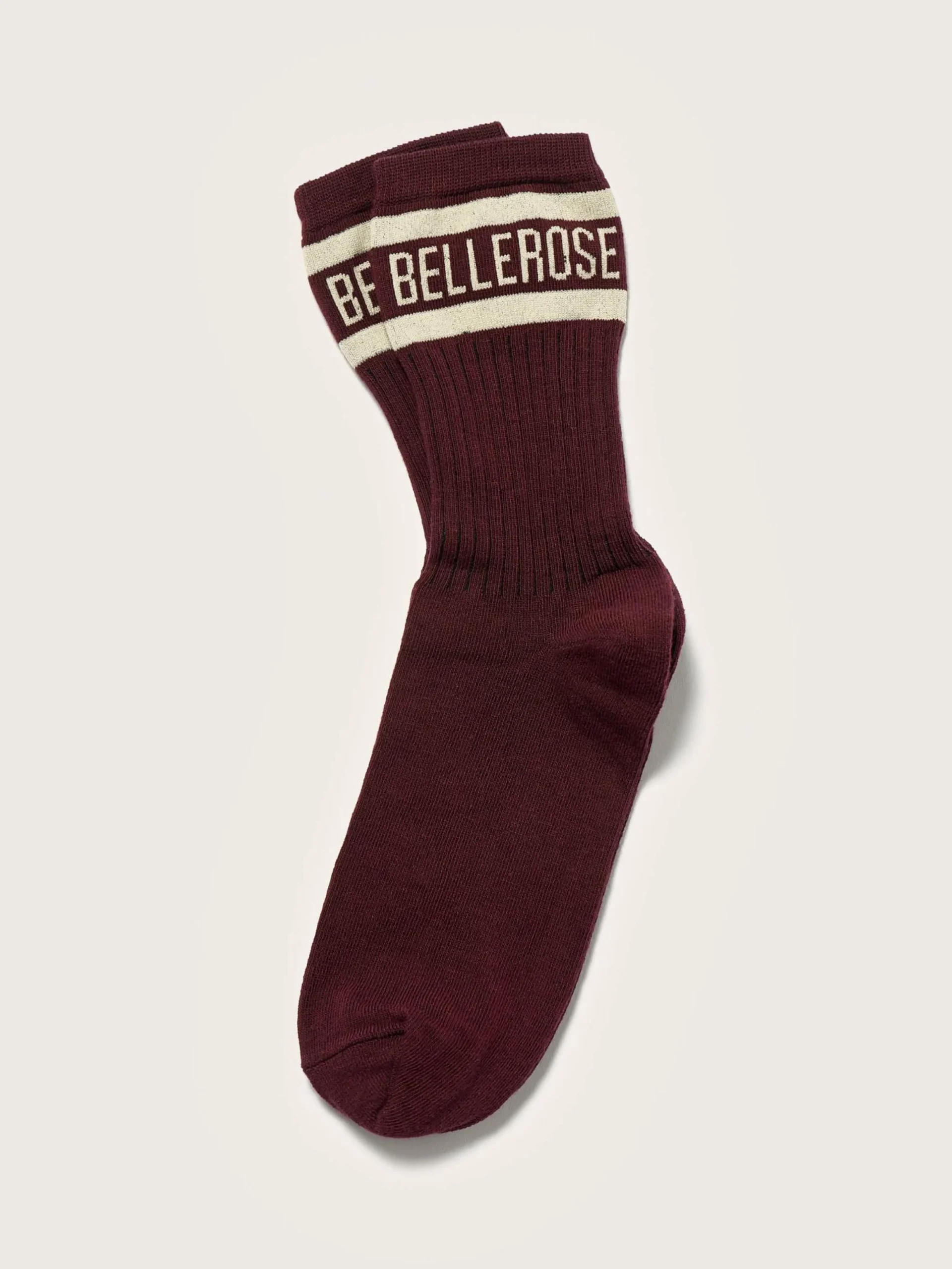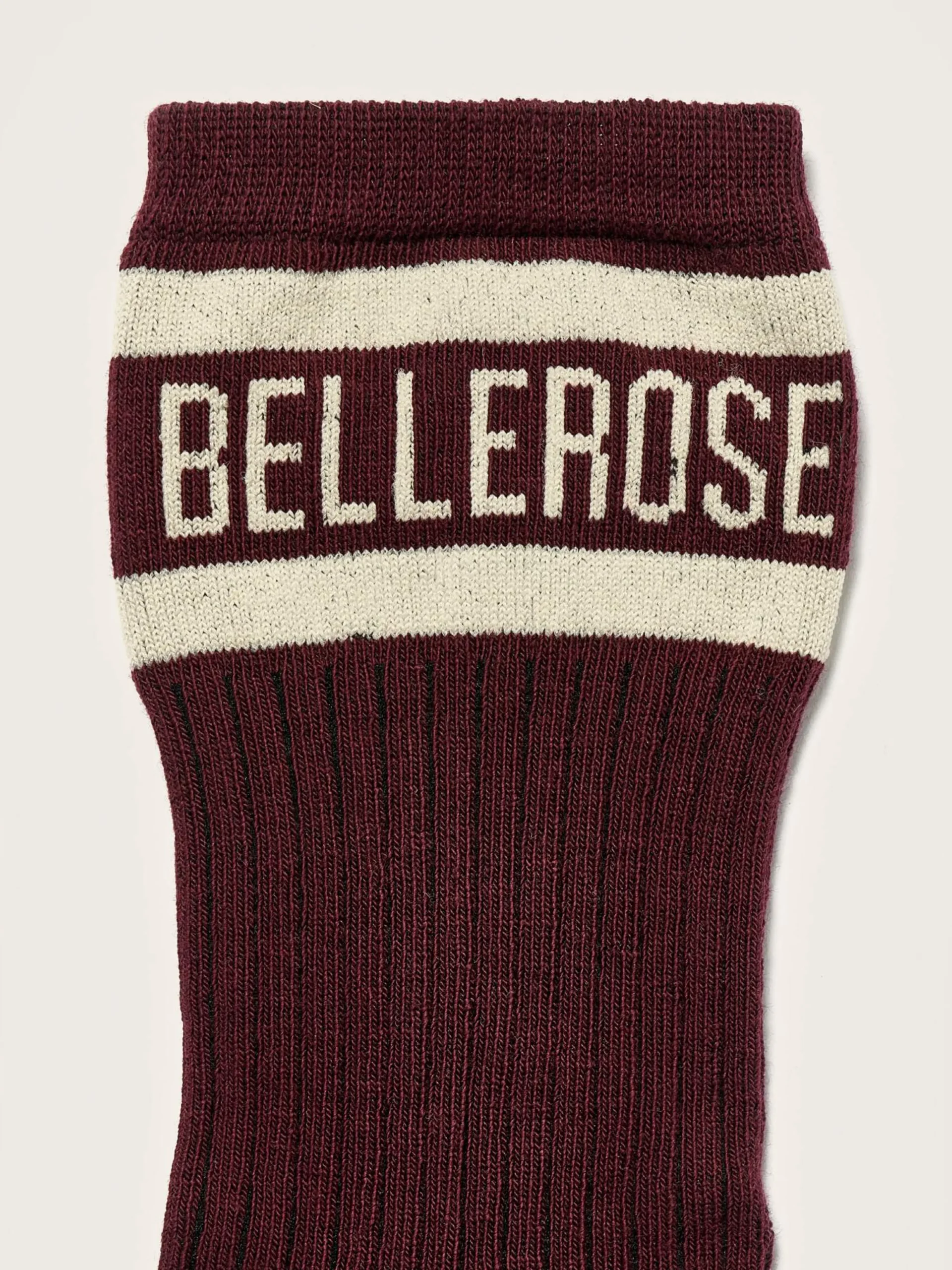 Klassieke sokken in bordeauxrood met Bellerose-logo in ecru op de enkel.