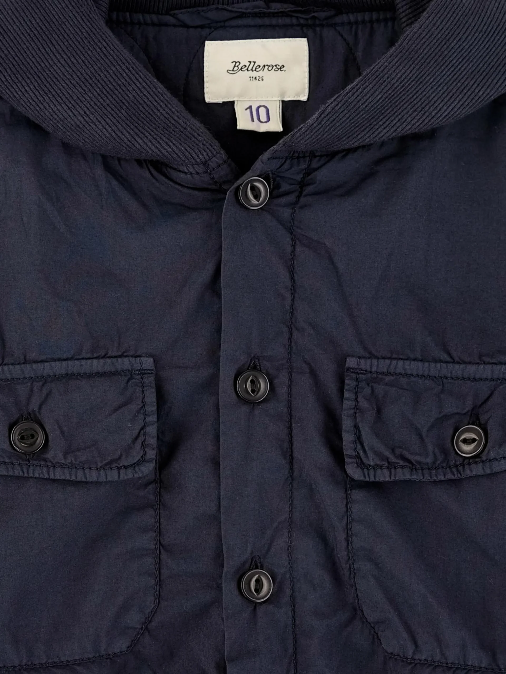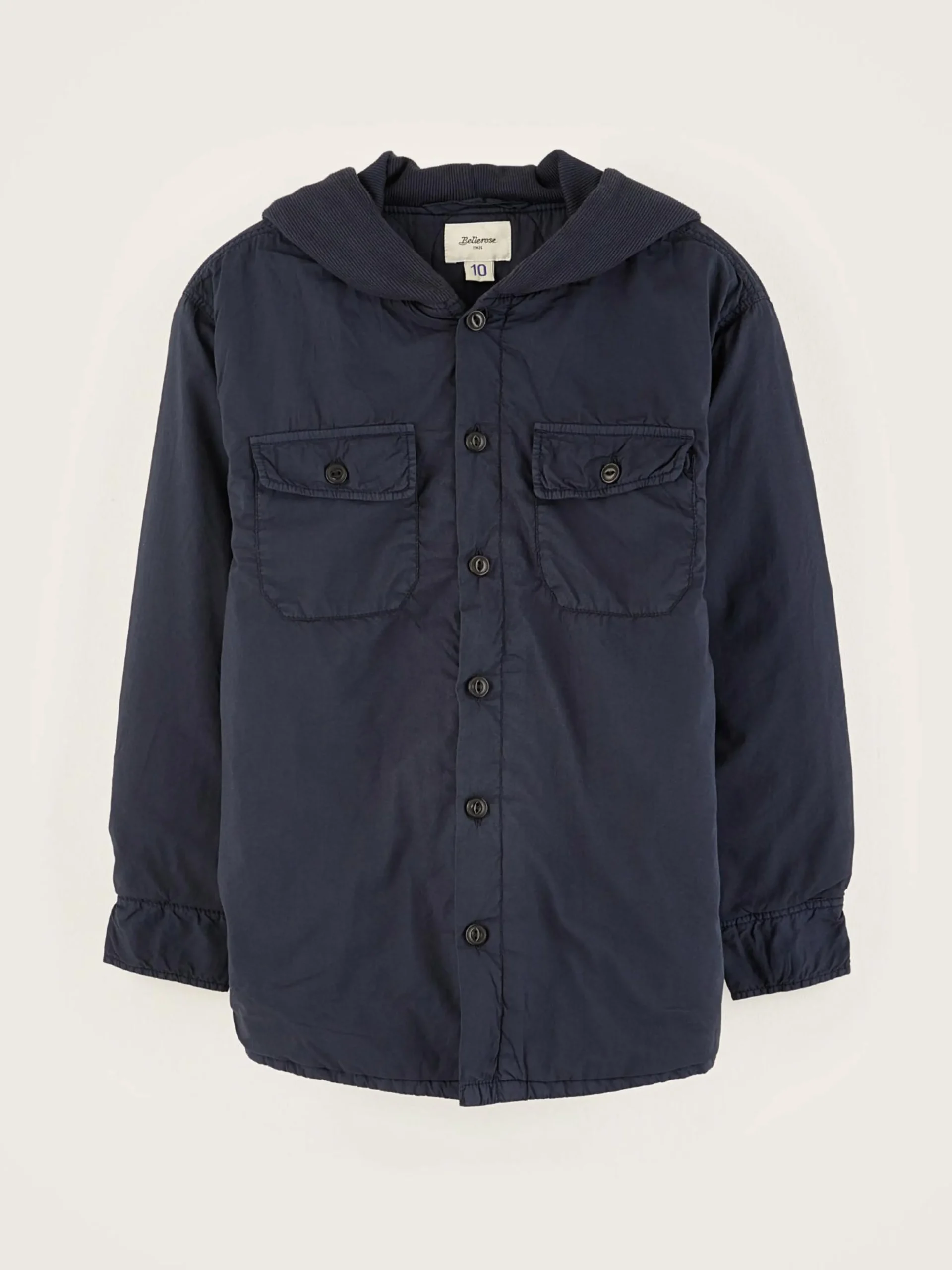 Klassiek marineblauw overshirt van popeline katoen, met een capuchon van jersey stof.
