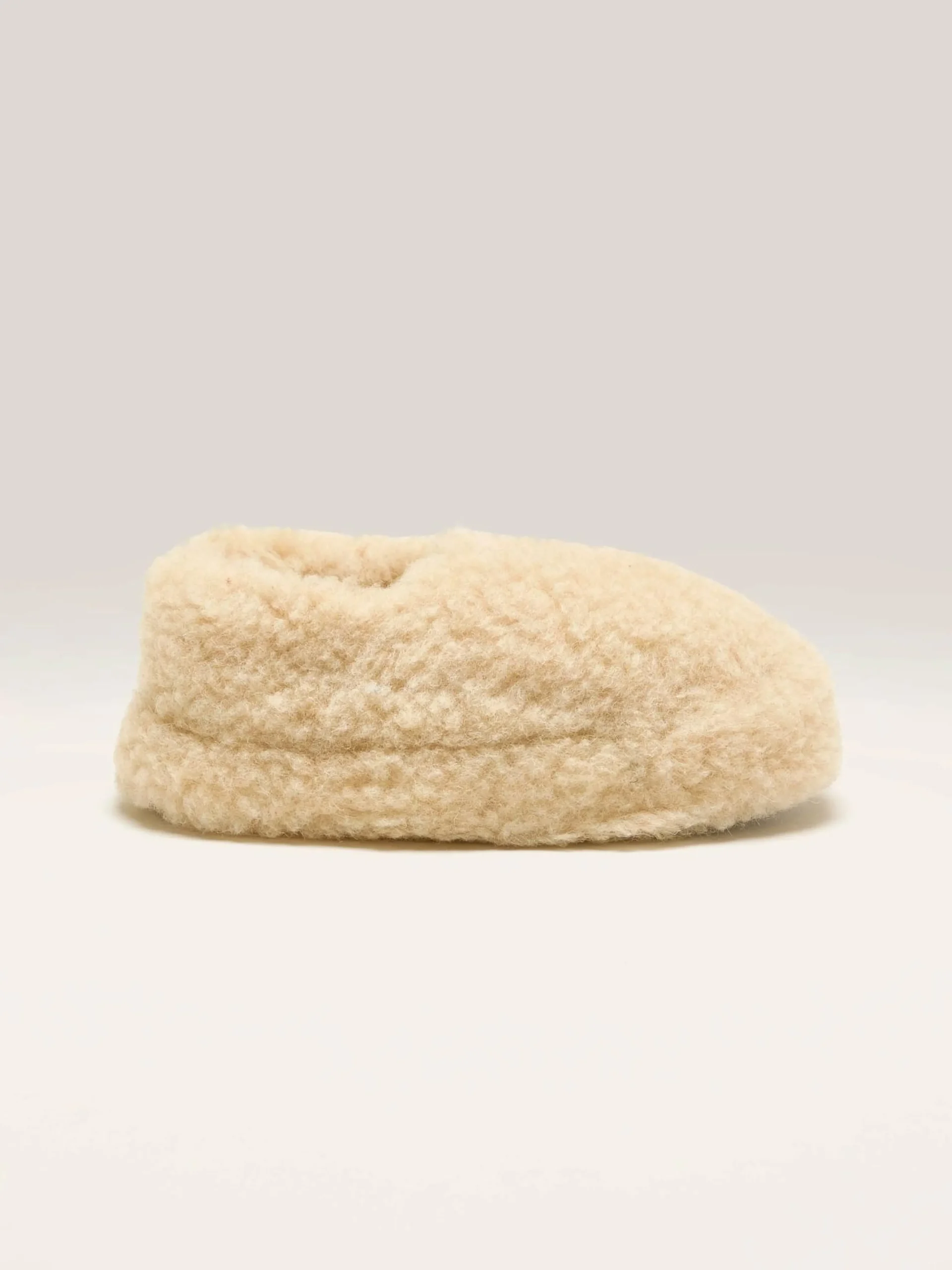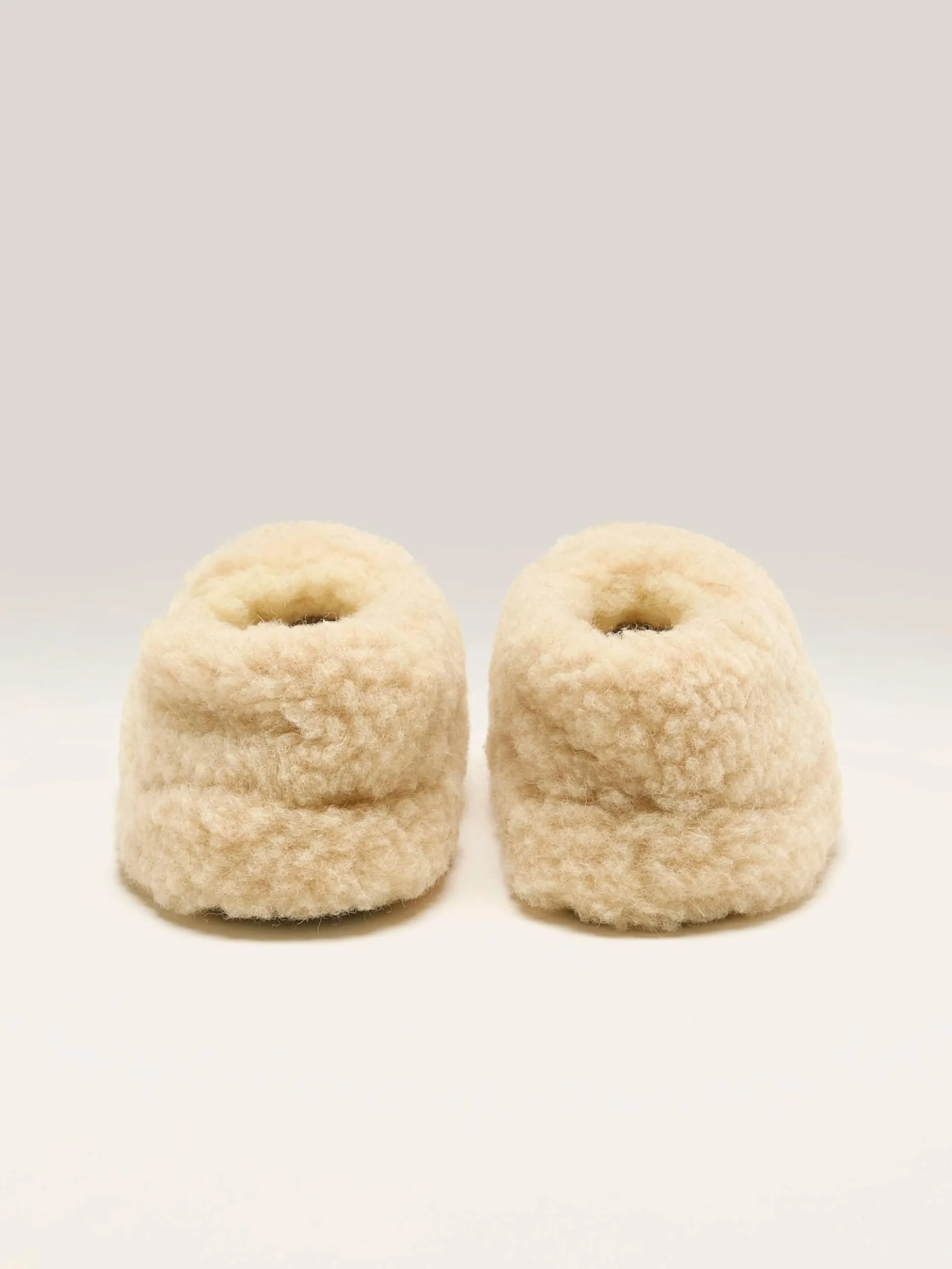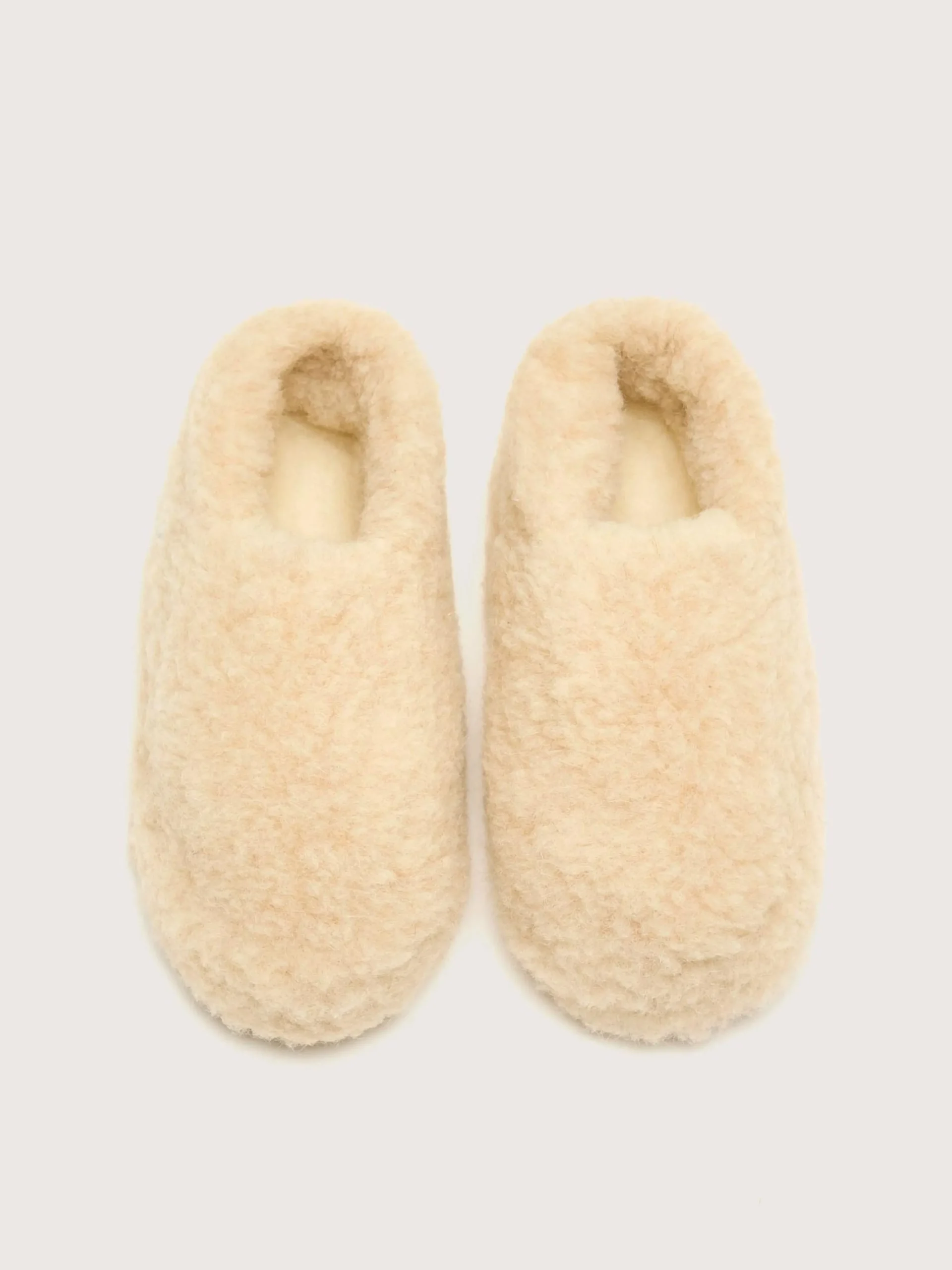 The Yoko Wool Siberian Slippers, crafted in soft wool, have non-slip outsoles.